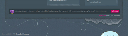 yaReads can be found in several social media sites such as Facebook, Goodreads, and Twitter. You can also view our posts through a reader. If you prefer to get updated that way, please subscribe to our feed.